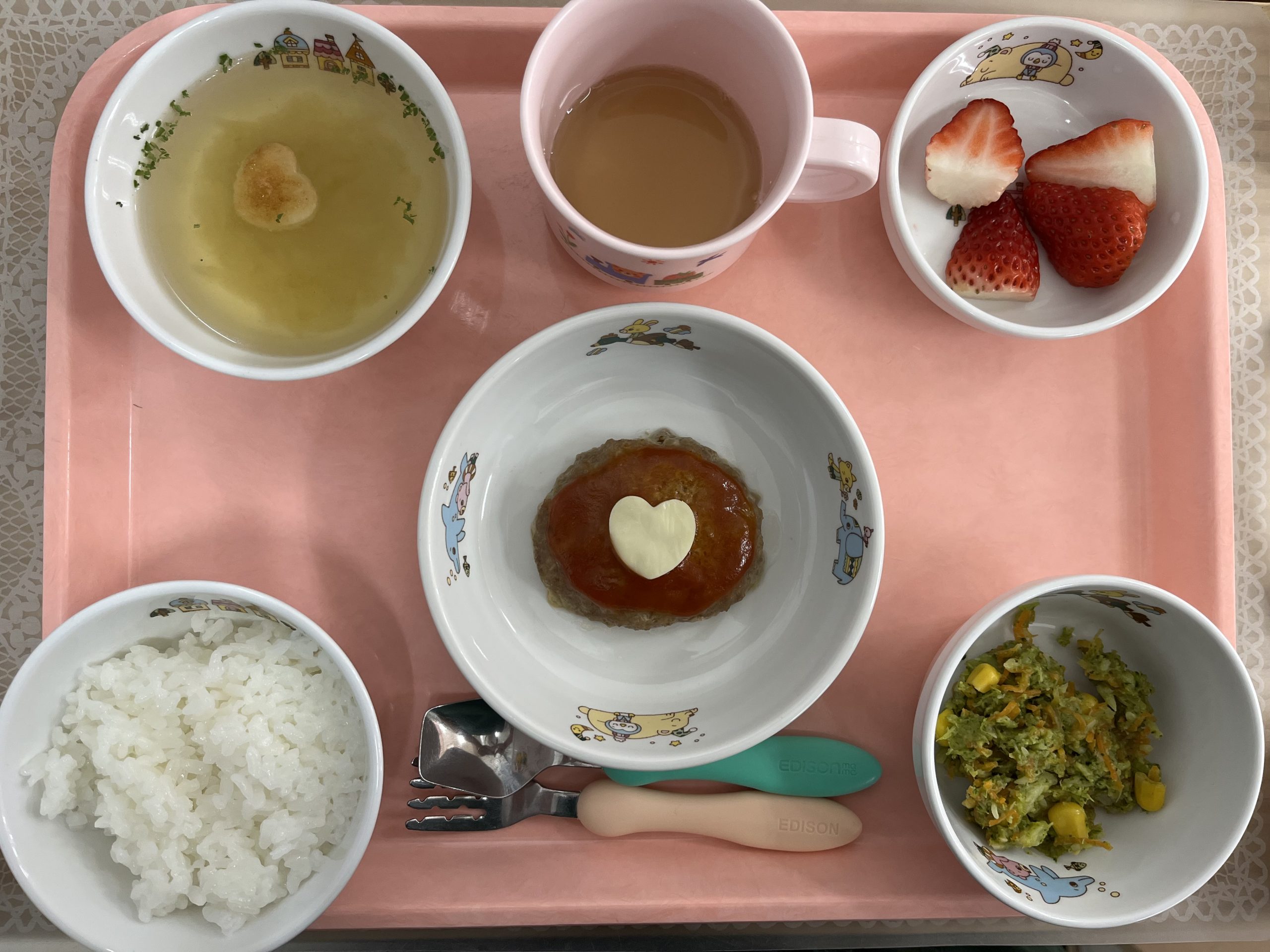 知育・徳育・体育を支えるのが食育の大切さです。年齢に合わせた食事栄養は、子供の健全な発達と生育を支える大きな要素です。脳の発達にも食事から得る栄養は欠かせません。現代の偏った食事を、本来のバランスの良い食事を取り入れる事で、子供を健やかに育てます。そして、家庭との連携を大切にして、一日の食事をバランスよく出来る様に、毎日の献立を公表していきます。
